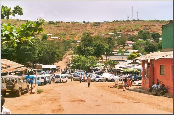 Ortszentrum am Markt und Dala Dala Stand.